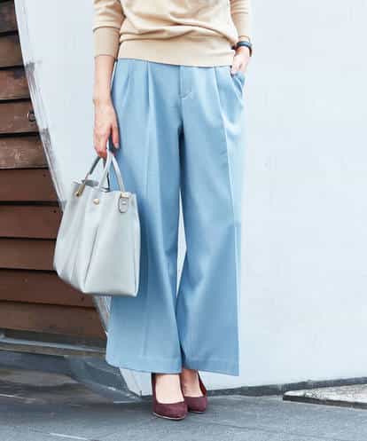 【洗える】裏起毛ワイドパンツ ライトブルー 36