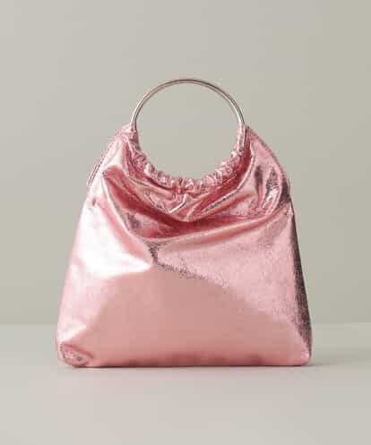 キラキラとしたメタル生地が目を惹くハンドバッグです。リング型の持手がお洒落度をグッと上げて、コーディネートのポイントに。コンパクトながら内ポケットも付いた使い勝手の良いバッグです。