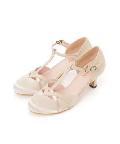 【オケージョン対応可能】フェイクスエード切替えTストラップパンプス アイボリー