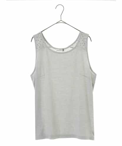 【大きいサイズ】ビジュー付きタンクトップ ライトグレー 1