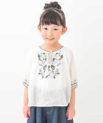 ◆大人顔負けの刺繍がポイント♪幅広いスタイリングで活躍します◆胸元にたっぷりの花柄刺繍をあしらった大人顔負けのブラウスです。軽やかな素材が春らしいスタイリングにピッタリです。カジュアルなスタイリングは勿論、スカートと合わせてガーリーなスタイリングでもおすすめです。※100サイズはWEB・一部店舗限定販売です。同じデザインの140〜160サイズございます。