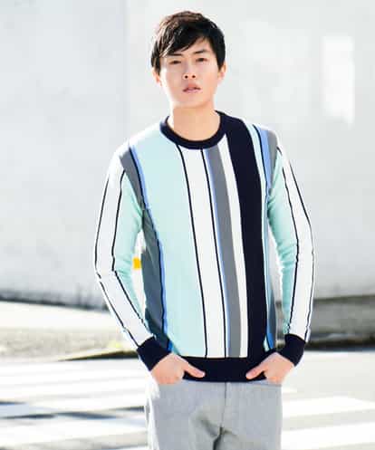 ◆今期トレンド!春カラ?を取り入れたマルチストライプクルーネックニット。(マシンウォッシャブル)◆今期トレンドのマルチカラーストライプクルーネックニット。ストライプのピッチにこだわりインナーとして着ても存在感のあるマルチストライプ柄に仕上げました。春先のトレンチコートやブルゾンに合わせるだけで、日常の着こなしに変化を与えてくれるこの春オススメのニットです。