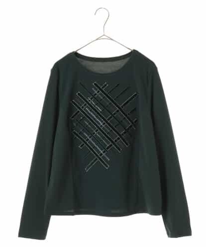 ベロアとスパンコールでバイヤスチェックを表現したカットソー。サイドに入った切替えがタテのラインを強調しメリハリのあるウエストシェイプしたシルエットに。一枚での着用はもちろん、ジャケットやカーディガンのインナーとしておすすめです。