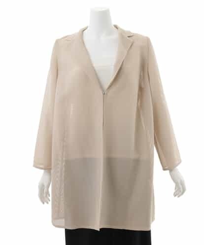 [クリスチャンオジャール大きいサイズ]シースルーの個性的なコットンメッシュの素材で仕立てたジャケット。季節感たっぷりの爽やかな素材感と、モードな雰囲気が合わさった大人のデザインジャケットに仕上がっています。何にでもあわせやすい万能ジャケット。夏までお召し頂ける商品です。 【トルソーサイズ】高さ:77.5cm/バスト:88cm/ウエスト:70cm/ヒップ:96cm