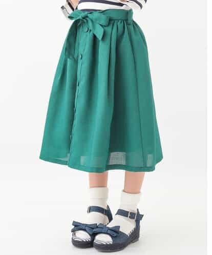 [100-130]フロントボタンウエストリボンスカート[WEB限定サイズ] グリーン 100