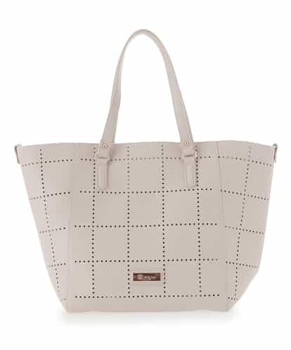 【ブロックチェック柄】【インポーチ付き】パンチングトートバッグ『カエラ』 ライトグレー フリーサイズ