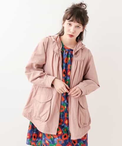シャカシャカとしたナイロン素材で仕上げたAラインがとってもキュートなコート。軽量で春先からのコーディネートの羽織りとしてぴったりです。デコルテラインの切替しや、寄せたギャザー、ファスナーのスライダー、ポケットの刺繍などディテールポイントが光るこだわりのあるアイテムです。ウエストのドローコードを引っ張れば、メリハリのあるシルエットにまとまります。裏地はコットン素材にプリントをほどこした内側からもオシャレを楽しめるアウターです。同ラインでノーカラーブルゾン【GJJDD38190】の作りもございます。model:H167 B80 W58 H87 着用サイズ:M