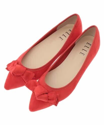 フェイクスエードのシックな質感に、タックでボリュームを出したリボンがアクセントになったパンプスです。上品なローヒールにポインテッドトゥが大人な雰囲気を演出してくれる一足です。縁取りをグログランにしたのもポイントになっています。