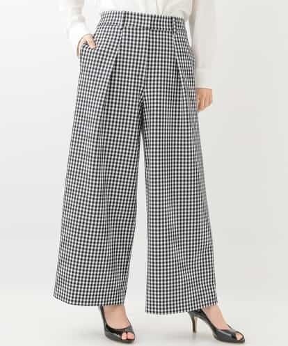 【3サイズ展開】【洗える】ギンガムチェックワイドパンツ ネイビー 36