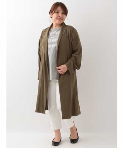 テロっとした素材で仕上げたロング丈のテロンチコート。袖にボタンが付いているので、袖をロールアップして留められるようになっています。ウエストベルト付きなので、前を閉じてベルトをキュっと締めた着こなしや、前を開いてベルトは後ろで結んだこなれ感を演出するスタイリングなどお好みに合わせて着用して頂けます。【トルソーサイズ】高さ:77.5cm/バスト:88cm/ウエスト:70cm/ヒップ:96cm