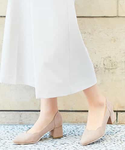 ◆スカラップのラインがポイントのパンプス◆なだらかなスカラップのカットラインがポイントのパンプス。太めのヒールとクッションソールで履き心地も抜群です。