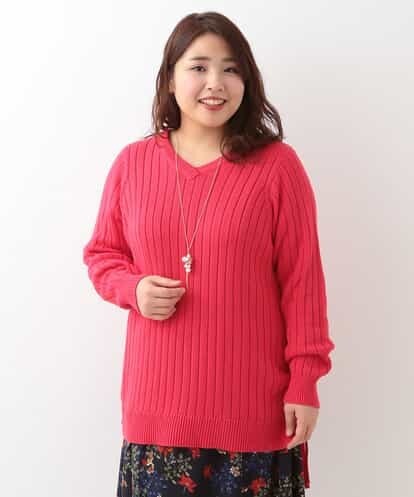 【大きいサイズ】レースアップニットプルオーバー レッド 2