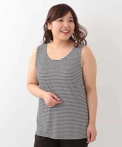 【大きいサイズ】ボーダータンクトップ アイボリー 1