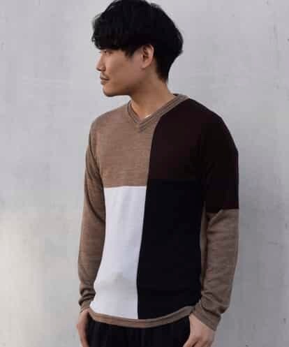 ウールをミックスさせたソフトで滑らかな着心地の良いリバーシブルタイプのVネックニット。ハイセンスな配色が惹かるブロックカラーの面とさりげないボーダー模様がおしゃれな面の2種類をドッキング。どちらもコーディネートしやすく、一枚で2倍の着こなしが楽しめるお得感のあるニットです。model:H183 C96 W80 H91 着用サイズ:L