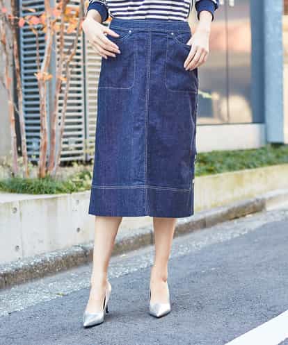 ■大人フェミニンなこだわりデニムスカート■ インディゴカラーのデニムで仕立てたミディタイトスカート。 今年から新定番ボトムとして登場したデニムパンツと同様、 日本が誇る岡山発祥のデニムメーカー【カイハラ】の 高品質な素材を使用したこだわりの一着です。 女性らしいミモレ丈のIラインシルエットに、 フロントラインやポケットのトーンカラーステッチで モード感のある大人の遊び心が表現されています。 左サイドのみのアシンメトリーなボタンフライが、 程よくシャープで辛口なアクセント。 ライトオンスでキックバックに優れ、軽やかな穿き心地も魅力。 ボーダーカットソーのようなカジュアルトップスを合わせても、 さまざまなテイストのアイテムとマッチしながら、 いつものスタイルをモードなフェミニンカジュアルへと アップデートさせてくれるイチオシのボトムス。 ※屋外での撮影は色味が多少異なる場合がございます。 商品の色味は、スタジオ撮影の画像をご参照ください。 model:H170 B81 W58 H87 着用サイズ:M(38)