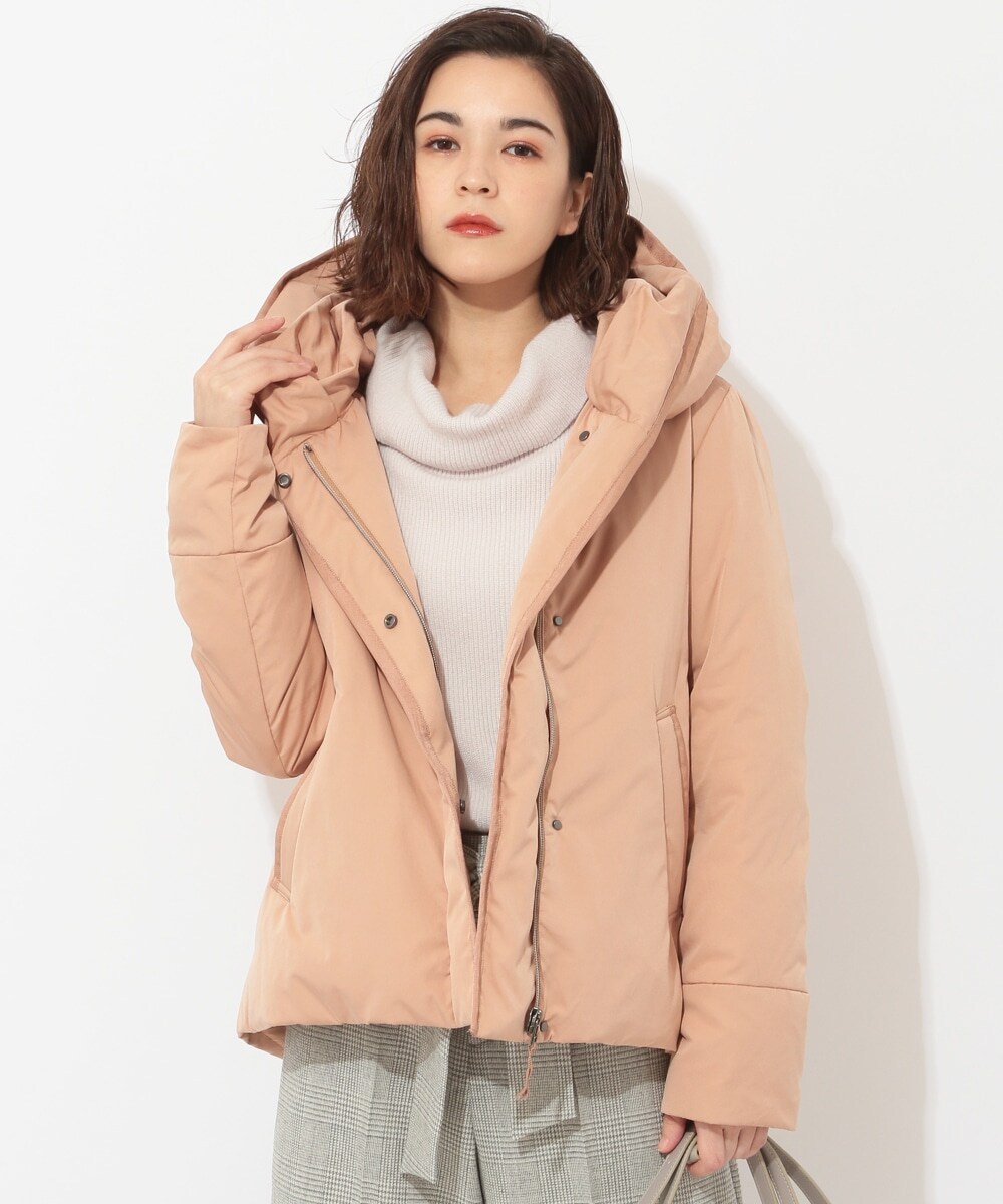 ■ボリュームボトムスにも合わせやすいコンパクトなデザイン■カジュアルになりがちなショートダウンの衿にボリュームを持たせることでデザイン性の高い1枚に。しなやかな風合い、マットな表面感、微起毛のパウダリーな質感が特徴のタフタ素材を使用。光沢を抑えることでエレガントさを追求しました。裾には調整機能、袖口にはゴムが入り、防寒性にも工夫しました。また、裏地には制電性、吸汗、防しわなど機能性に優れた素材を使用しています。ボリュームボトムスに合わせたいコンパクトダウンです。model:H170 B82 W58 H85 着用サイズ:M
