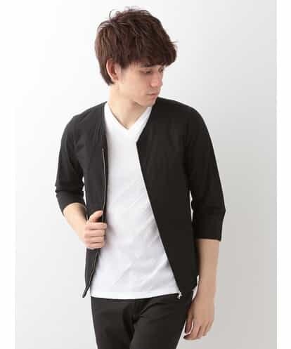 【雑誌掲載アイテム】ノンカーラーのすっきりとしたデザインのブルゾンです。シンプルなデザインのアイテムなので、合わせるトップスを選ぶ事なく、きれいめカジュアルなスタイリングが決まります。7分袖のアイテムなので、季節の変わり目に便利です。model:H182 C92 W71 H90 着用サイズ:48