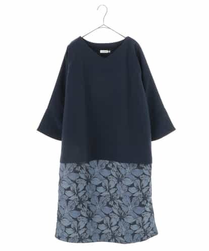 【大きいサイズ】【セット】プルオーバーブラウス&ジャカードワンピース ネイビー 1