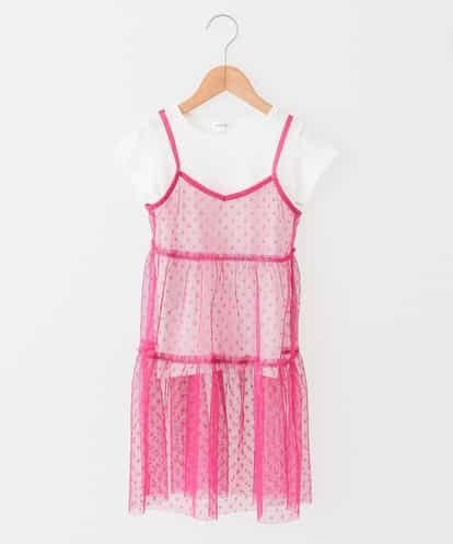 ◆ボトムの透け感を楽しめるセットアイテムです◆可愛いカラーのドットチュールワンピースと、着回し◎のシンプルなTシャツのセットアイテム。スキ二?やショートパンツを透かせて元気なスタイリングが楽しめます。キャップやスニーカーでハズしたコーデもおすすめです。※同じデザインの100〜130サイズ・160サイズもございます。