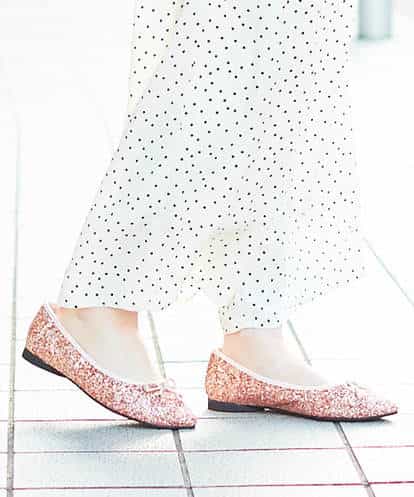 ◆リーズナブルに旬なおしゃれを楽しめるパンプス◆きらびやかなグリッターのバレエシューズ。春らしいライトピンク、合わせやすいブラック、ぱっと華やかなゴールドの3色展開です。※22.5サイズはWEB限定販売です。