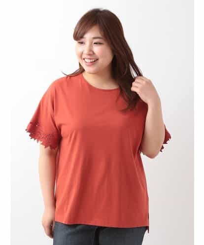 全3色【大きいサイズ】上品に決まる!袖レースフラワーカットソー オレンジ 2